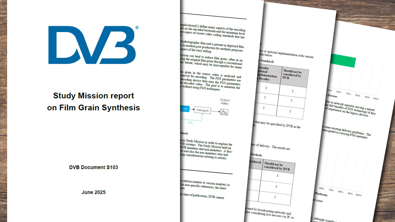The DVB Project has published the final report of a study mission that examined the potential role of Film Grain Synthesis (FGS) in DVB services. The work took place under DVB’s commercial working group on audio and video coding, CM-AVC. It was led by Ken McCann, representing Dolby. Film grain… Read More